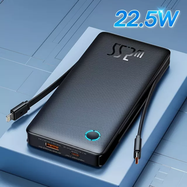 22.5W 10000mAh Fast Charging Power Bank with Built-In Cables