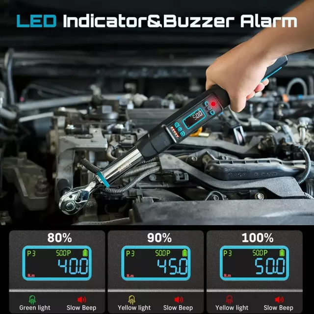 Unlike traditional mechanical wrenches, this digital torque wrench minimizes human error. Preset torque values let you repeat the same task again and again without recalculating. Visual LED indicators and audible alerts guide you as you approach your target torque, helping prevent stripped bolts or damaged parts.