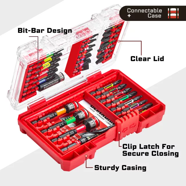This set stands out thanks to its smart organization, wide bit selection, and impact-ready strength. The magnetic tips hold screws firmly in place, reducing slips and frustration. A transparent, stackable case lets you instantly see and access the tool you need, while the secure clip latch keeps everything locked in during transport. Retractable hooks make it easy to hang the case on a wall or toolbox for quick access.