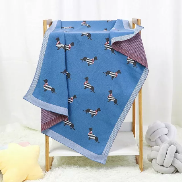 This soft cotton knit blanket isn’t just adorable; it’s also practical for daily use. The breathable cotton material ensures your baby stays comfortable without overheating, while the size is ideal for swaddling or covering them in a stroller. The playful dachshund design makes it a standout piece, bringing joy to any nursery or stroller. Parents will appreciate how easy it is to care for — simply machine wash for a quick and easy clean.