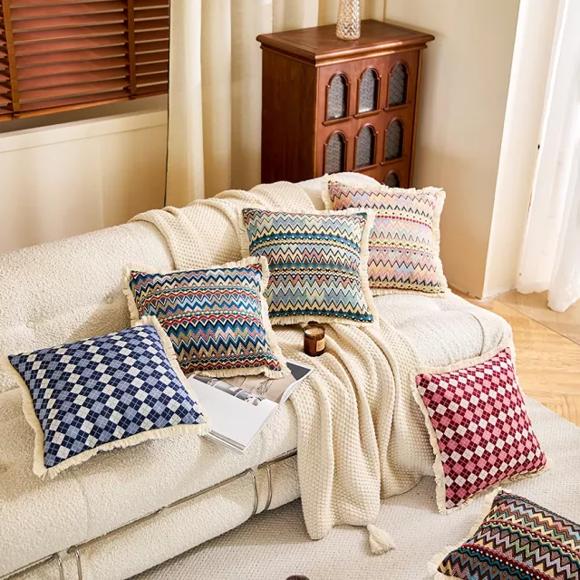 Bohemian Cotton Linen Sofa Pillow Cover, Ethnic Jacquard Cushion Case 18×18 inches