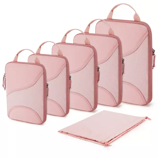 Turn chaotic packing into an effortless, organized experience. These compression packing cubes are designed to help you fit more into your suitcase while keeping everything neat, visible, and easy to access. By using a smart compression zipper system, your clothes are flattened and excess air is pushed out, saving up to 60% more space. No more sitting on your suitcase or leaving favorite outfits behind.