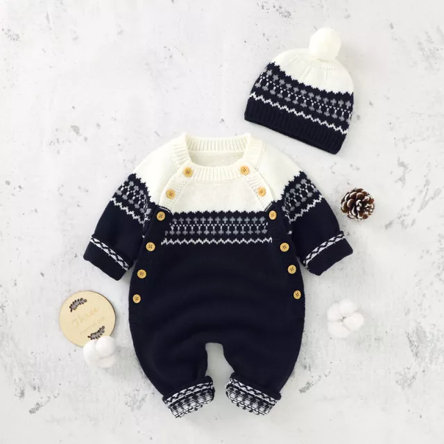 Cozy Knit Baby Romper & Hat Set for Newborns