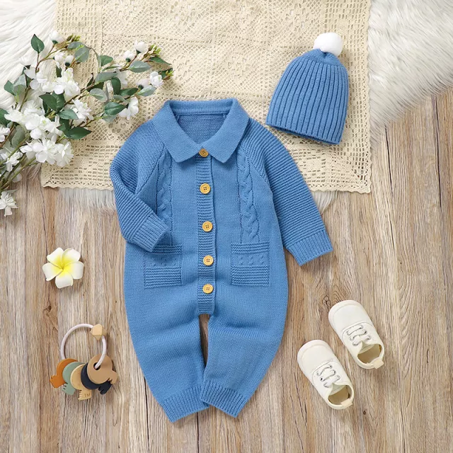What makes this outfit special is its perfect balance of function and fashion. The breathable knit keeps your baby warm without overheating, making it ideal for daily wear during cooler weather. The solid color design pairs easily with socks or booties, while the included hat completes the look with minimal effort. It’s a go-to outfit that looks adorable and feels comfortable from morning naps to evening cuddles.