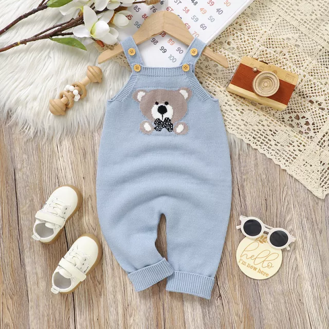 Knitted Bear Baby Romper Sleeveless Warm Jumpsuit for Newborns 0–18M
