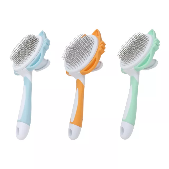 Turn everyday grooming into a relaxing bonding moment with this one-button self-cleaning pet brush. Designed for both dogs and cats, it removes loose hair, dirt, and tangles while gently massaging the skin. The smooth stainless steel pins glide through fur without pulling or scratching, making it ideal for pets with sensitive skin. Whether your pet has short, medium, or long hair, this brush keeps coats looking clean, healthy, and shiny.