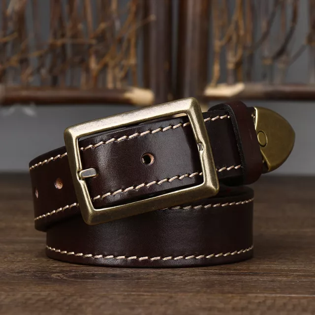 Premium Genuine Leather Belt with Vintage Brass Buckle for Everyday Style