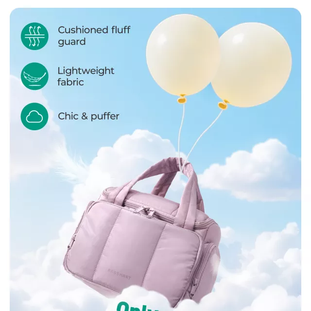 What truly sets this toiletry bag apart is its balance of softness, strength, and smart functionality. The puffy polyester exterior is lightweight yet durable, with water-resistant protection that helps handle spills, leaks, and unexpected moisture. Dual padded handles provide a secure grip while traveling, and the wide 180-degree opening allows quick access, even when you’re in a hurry. It’s designed for people who want organization without sacrificing style or comfort.