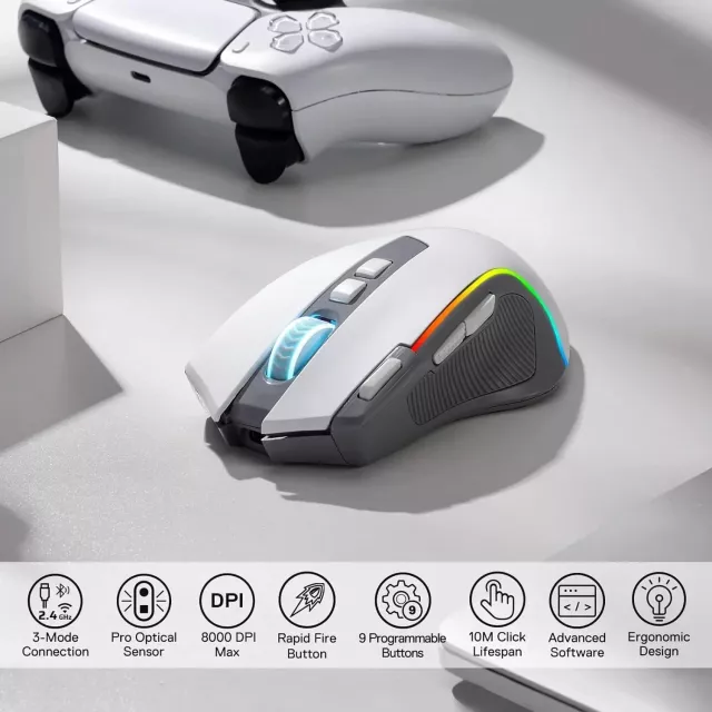 This gaming mouse isn’t just about looks—it’s built to perform. With its versatile connectivity options, it ensures a seamless experience no matter where you are or what device you’re using. The customizable DPI lets you tailor your sensitivity for any type of game, while the programmable buttons allow you to assign complex commands for maximum efficiency.