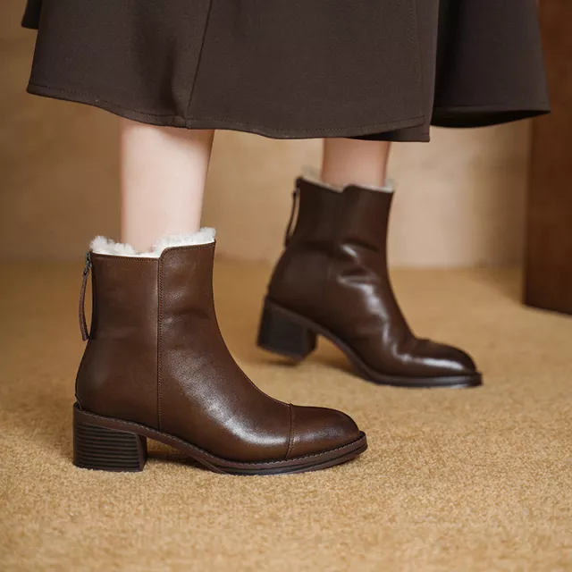 These ankle boots are made for women who want warmth without sacrificing style. The round toe design offers a relaxed, comfortable fit, while the sturdy square heel adds balance and confidence with every step. With a heel height of approximately 2.2 inches, they provide a flattering lift that’s easy to walk in all day. The side zipper closure allows for quick on-and-off wear, making them a practical choice for busy winter mornings.